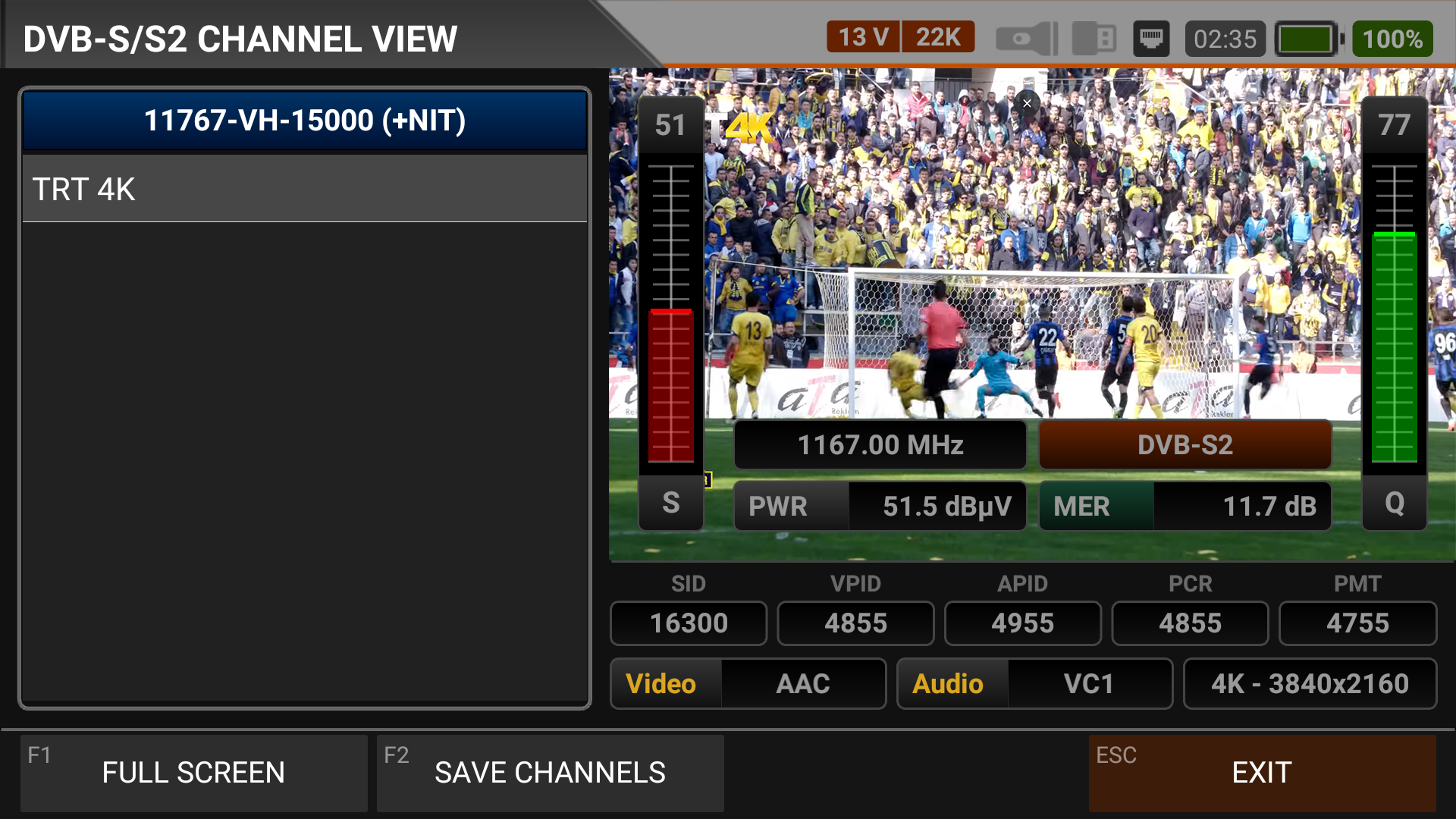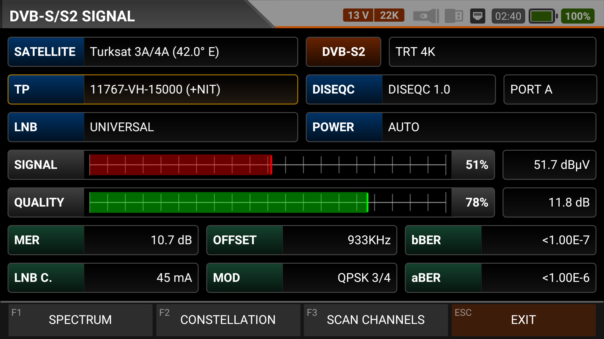 Dvb S/S2 Sat: 950-2150 Mhz Frequency Measurement Range