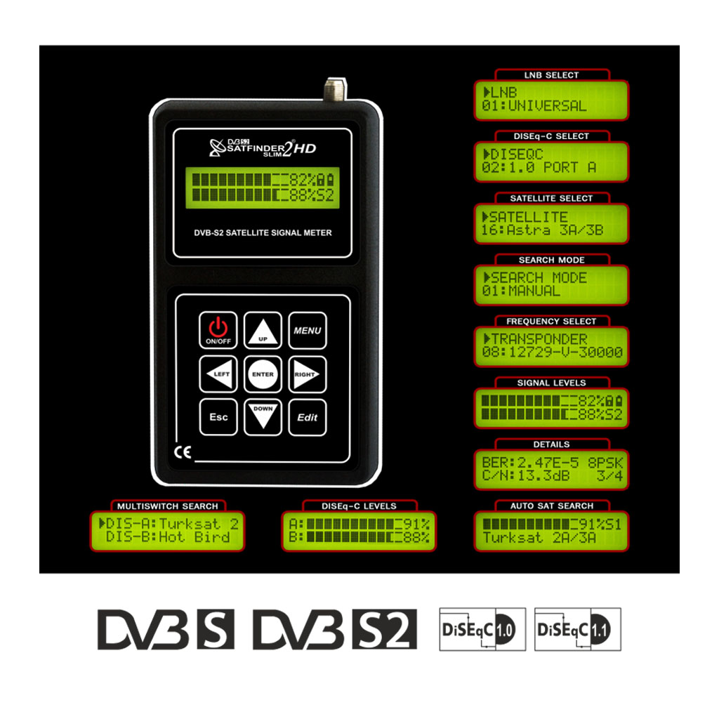 SATFINDER 2 HD SLIM fast and easy satellite finder equipments for semi professional DVB-S/DVB-S2 installers.