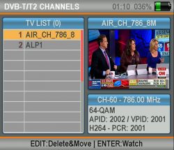 - FEC : DVB-T: 1/2, 2/3, 3/4, 5/6, 7/8 , DVB-T2:1/2, 2/3, 3/4, 5/6, 7/8, 3/5, 4/5