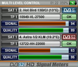 - Multi Sat Level Control: Dual Feed LNB 2 satellite’s levels in one screen